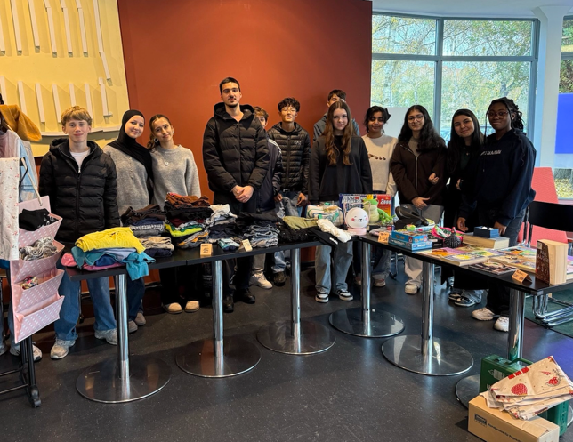 Den Abschluss der Aktionswoche bildete ein Projekt der Wahlpflichtkurse Englisch 9, die sich intensiv mit Fast Fashion und Überkonsum auseinandergesetzt hatten. Ausgehend von einer Unterrichtsreihe über die ökologischen und sozialen Folgen der Modeindustrie entwickelten die Schüler*innen die Idee, einen schulischen Flohmarkt in der Infostation zu organisieren.