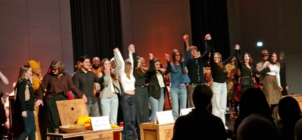Am 21. November 2025 feierte das Musiktheaterstück People of Song seine Europapremiere im Humboldt Forum – und unsere Schule war auf besondere Weise daran beteiligt. Das Stück setzt sich intensiv mit der gemeinsamen Geschichte Namibias und Deutschlands auseinander und bildet zugleich einen wichtigen Beitrag zu den Feierlichkeiten anlässlich des 25-jährigen Jubiläums der Städtepartnerschaft Windhoek – Berlin.